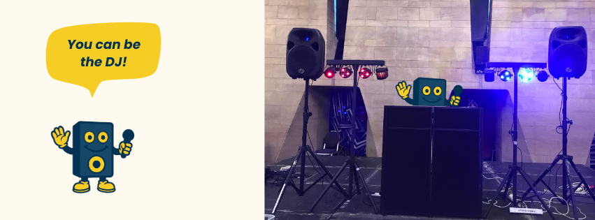 Whatever you call it – it’s the same service: affordable DIY DJ setups with speakers, booth, and disco lights delivered straight to your venue.